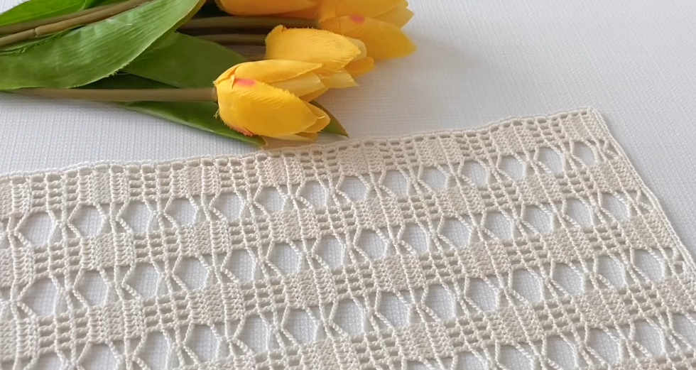 ✔ Pattern structure returns to V-stitch row
