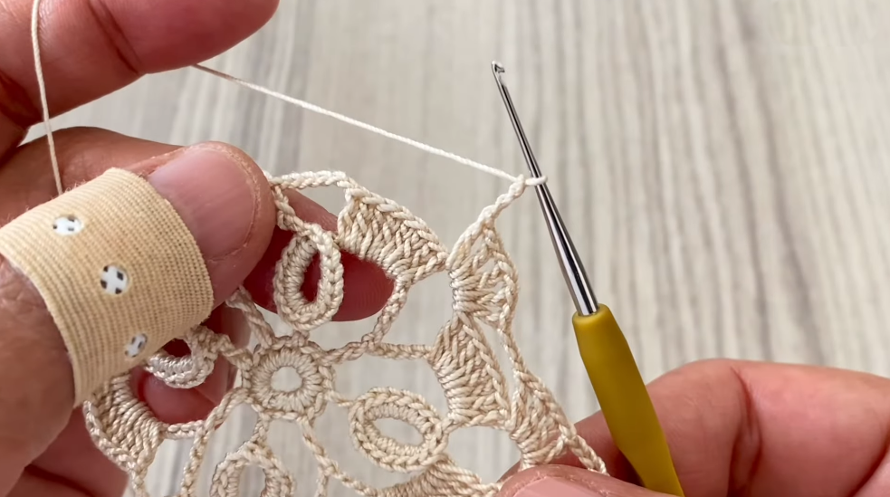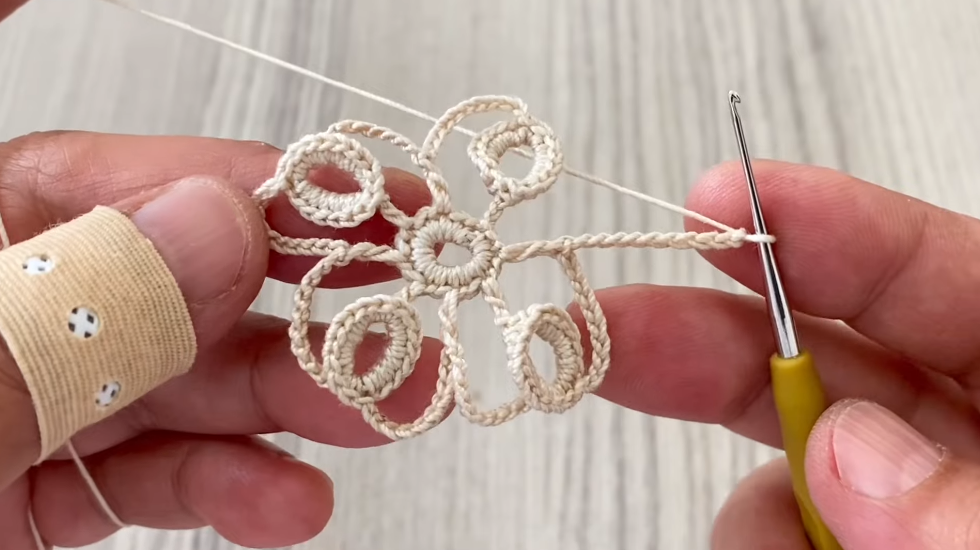 - Slip stitch between petals