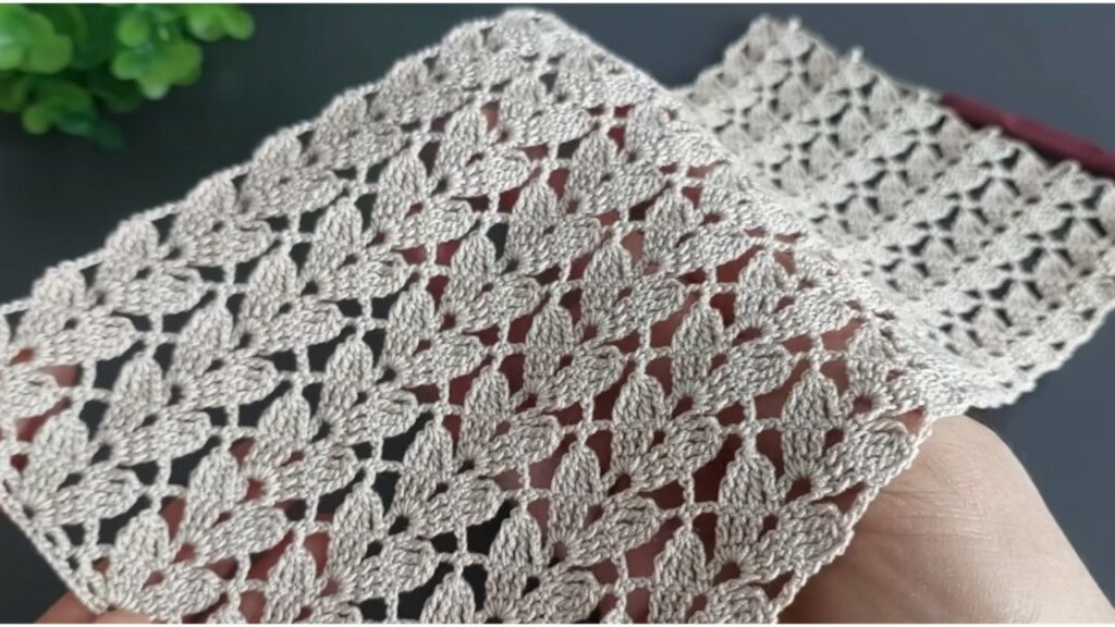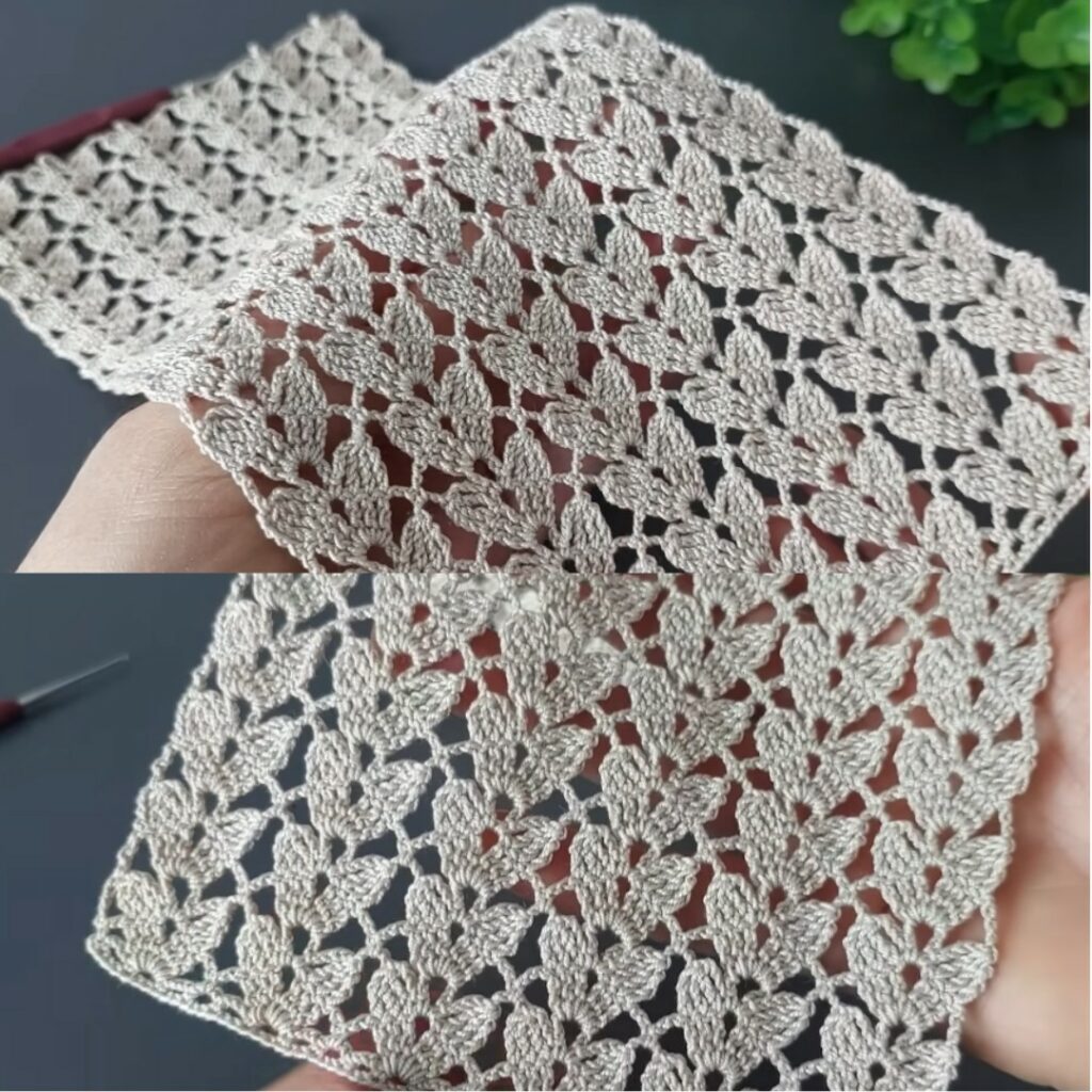 - Chain a multiple of 4 + 2 (for example, 42 ch for a sample swatch).