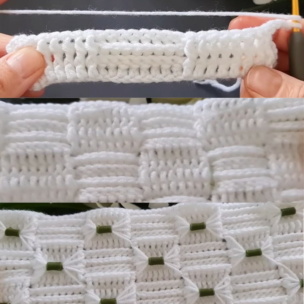 - Align the pattern so that the texture is repeated: for example, skip 1 st, work dc in next st, ch 1, skip 1 st, dc in next st — repeat across the row.