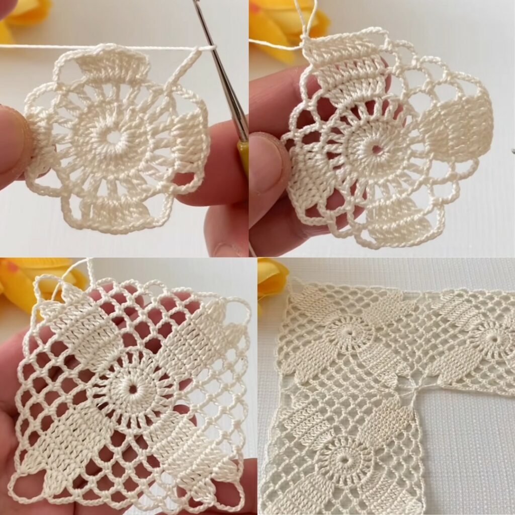 - Join more motifs as desired to form your final piece — rectangular, circular, or freeform.