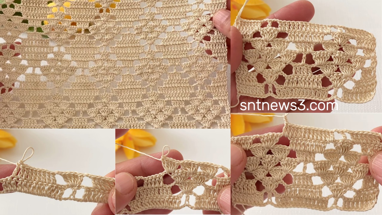 (Insert your hook where shells meet — the “valley”) - Repeat chain arches across