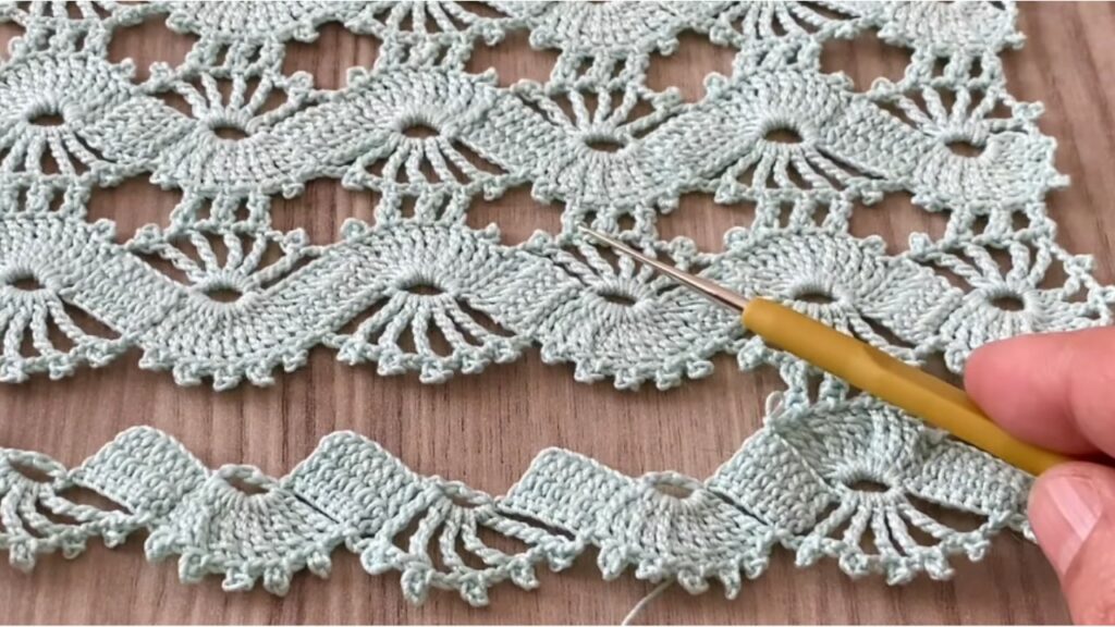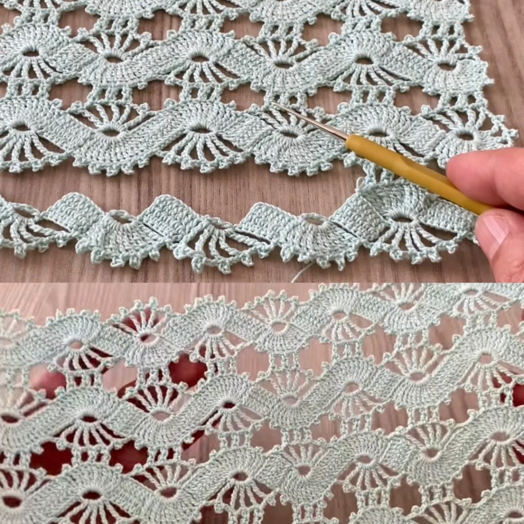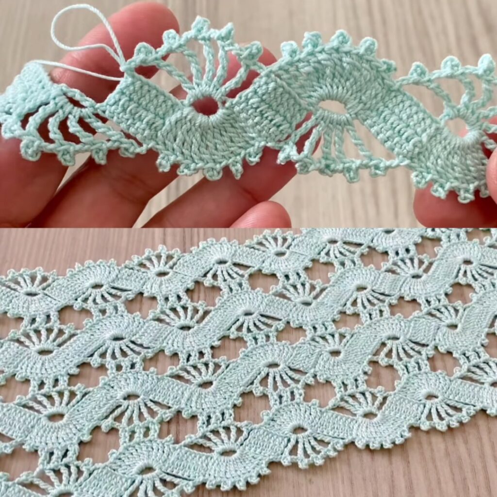 - Edging: work the same motif as a narrow tape (small chain, repeat across) to make decorative edging for towels or garments.