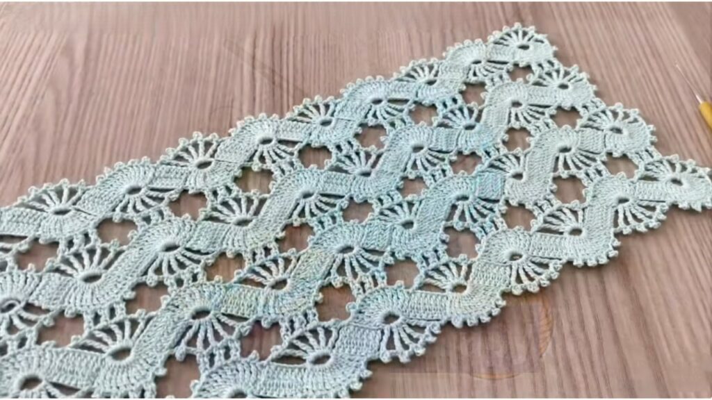 - Repeat Row 1 → Row 4 (or Row 1 → Row 3 for a simpler repeat) until piece reaches the desired length.