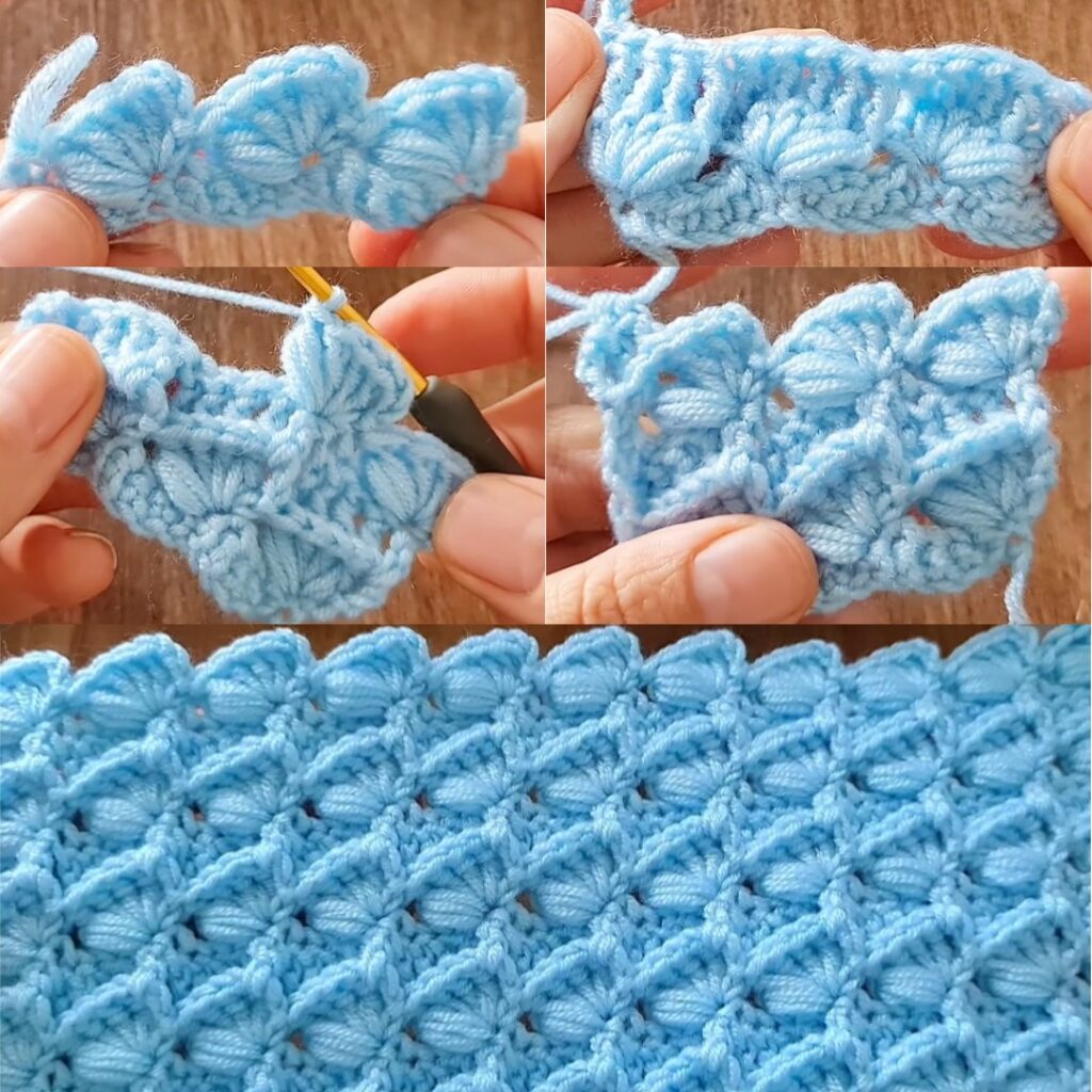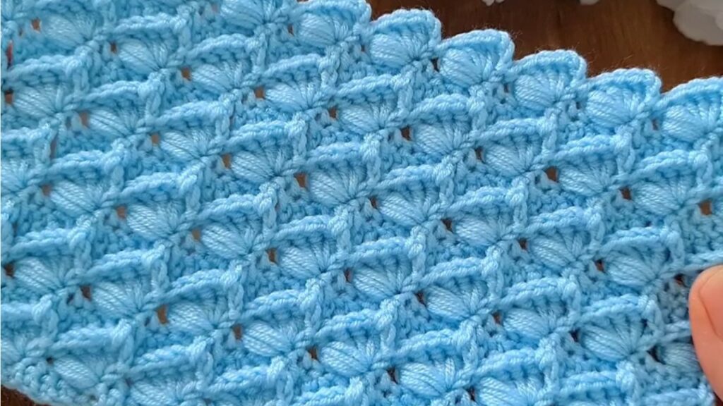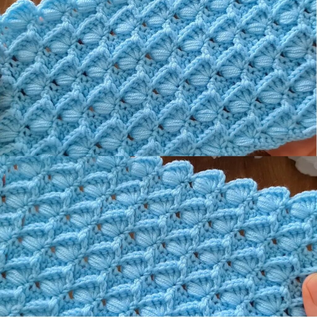 This pattern creates a soft and fluffy wave-shell texture, perfect for baby blankets, scarves, shawls, and cardigans. It works up very quickly and is beginner-friendly.
