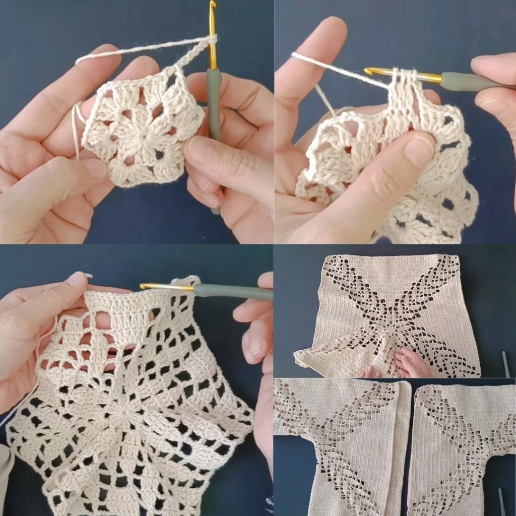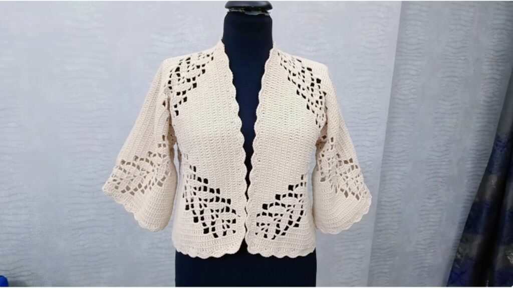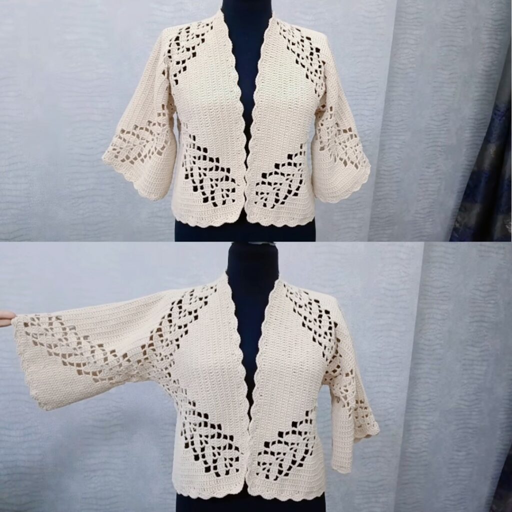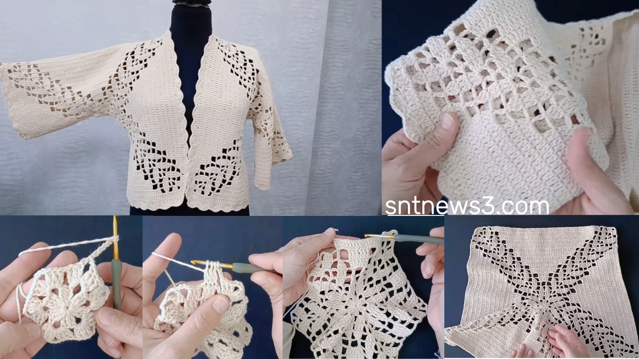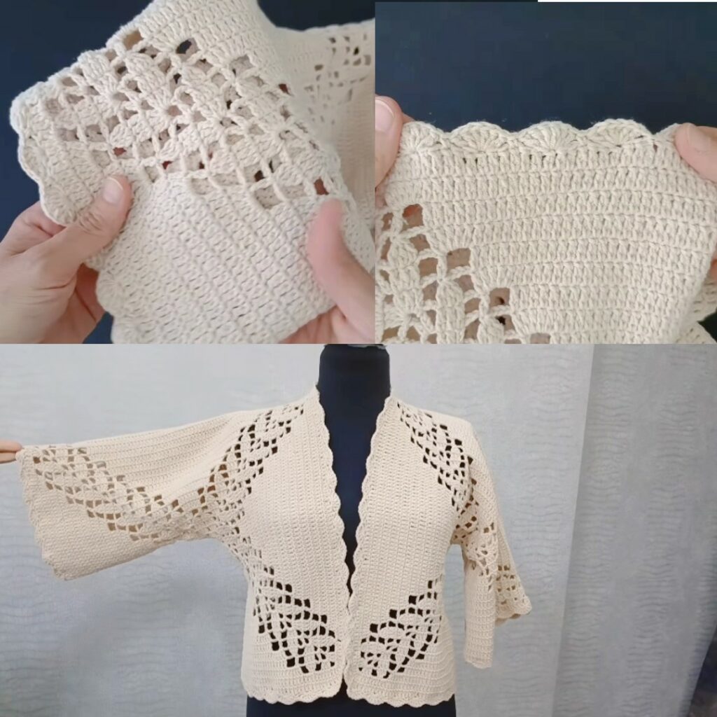 A beautiful leaf-lace hexagon cardigan — no shaping, no complicated seams.