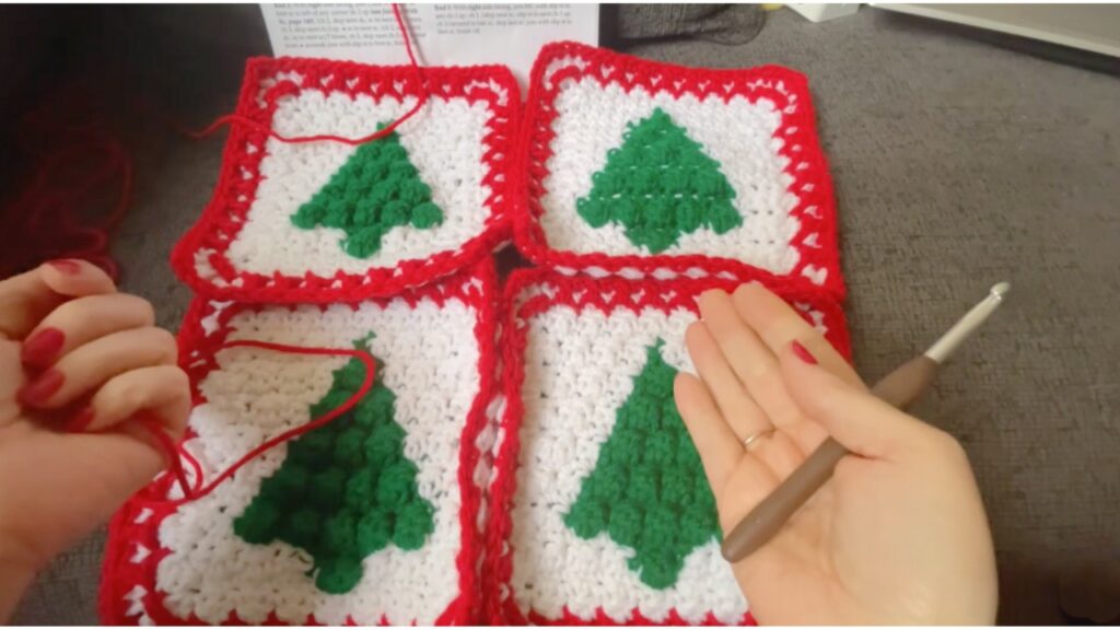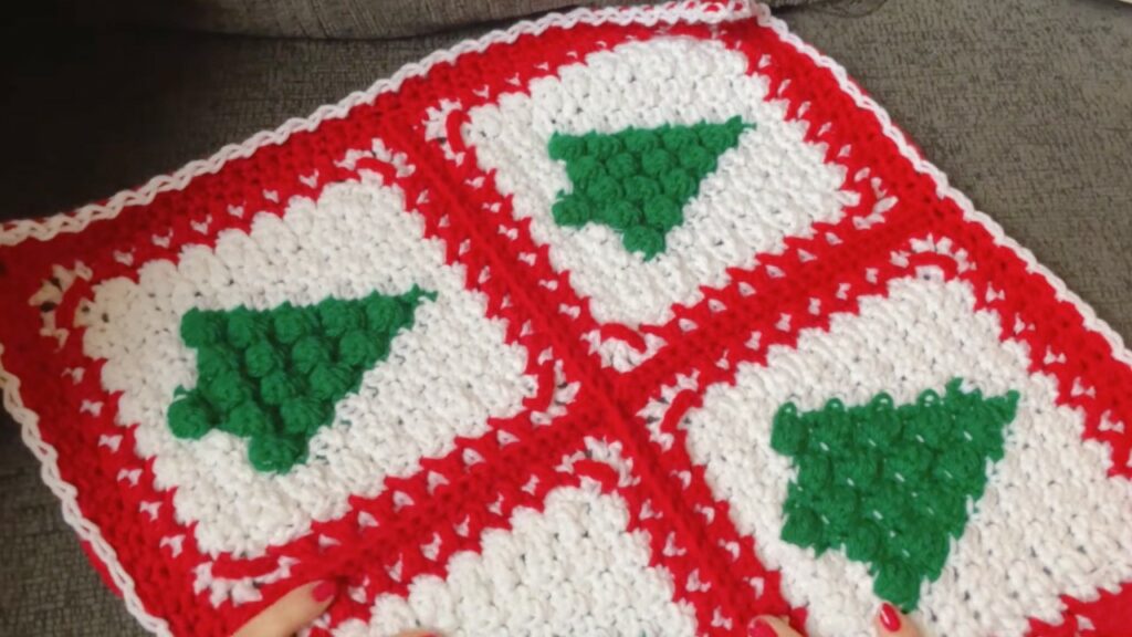 Hello! Today I’ll write a clear, complete step-by-step English tutorial “1980s-style Christmas Tree Throw Blanket“. I’ll give you everything you need: the square base, a removable appliqué tree, an applique star, how to assemble the throw, and a decorative border — written so you can work from the pattern without watching the video. This version uses easy techniques (granny-style squares + applique trees) so it’s beginner-friendly, fast to work, and produces a classic vintage look.