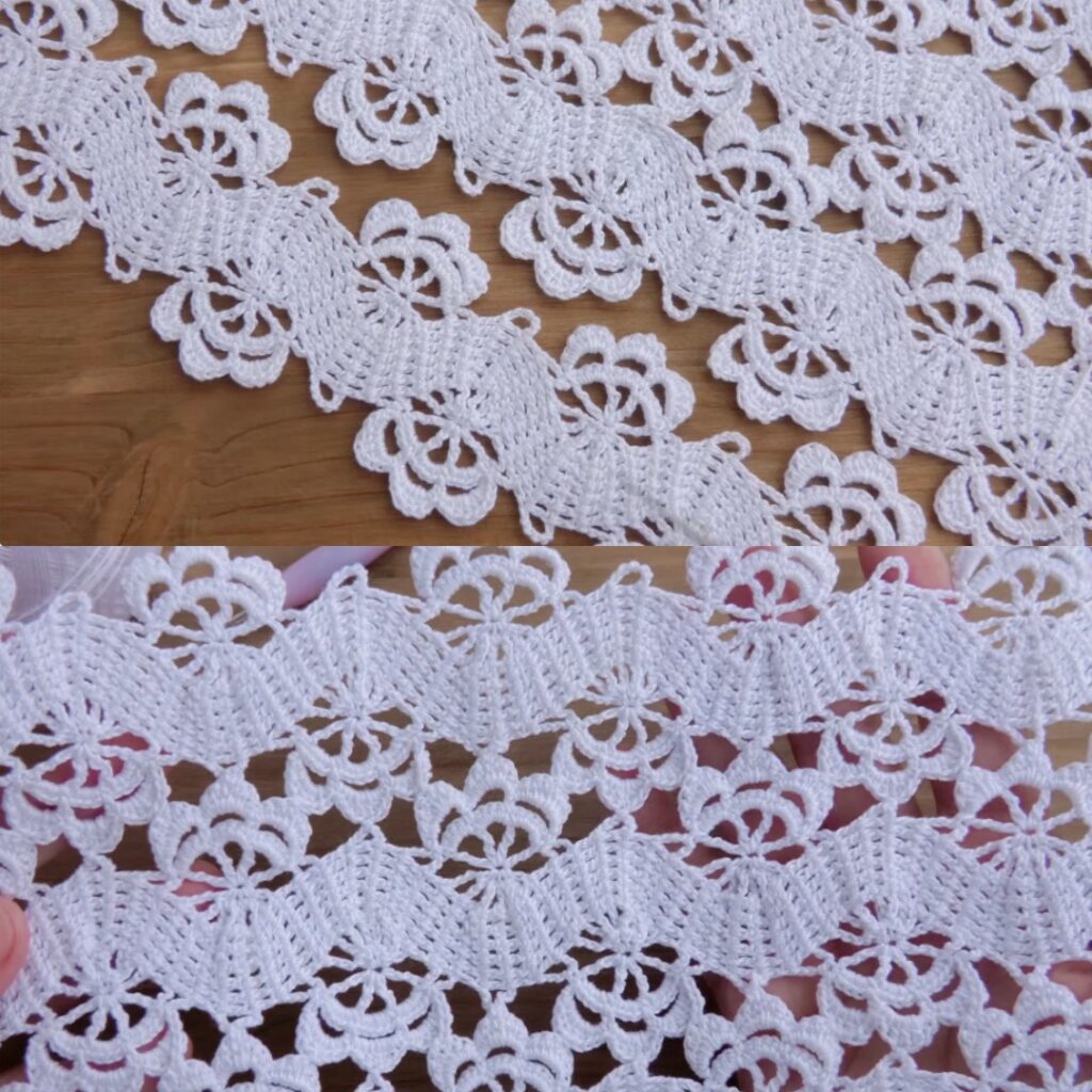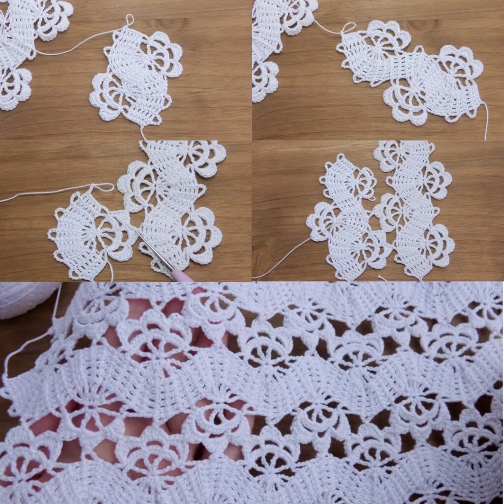 - Edges look uneven: Make sure you always begin with ch-3 and end with dc in last 2–3 sts to match pattern. If edges still ripple, add an extra sc round before the scallop border to stabilize.